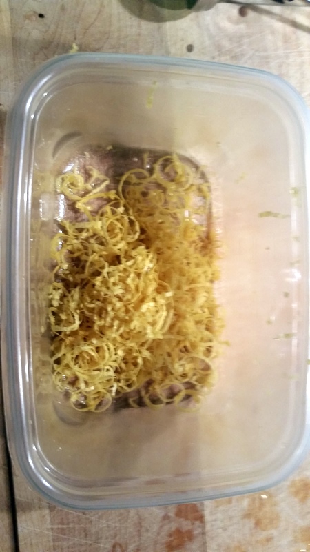 So, my recent obsession has been brewing beer. I have a love of dark beers and my first 3 batches were just that... very dark, somewhat bitter, and very tasty beers. The most recent batch, however was inspired by Jerry Payton's Margarita Gose. Or, more accurately, Connie Payton's Margarita Gose because he made it for her. I'm switching it up a bit and doing a Lemon Drop Gose. I was a bit low (3 or 4 degrees) on the mash-in temperature, but not too bad. The temperature stayed right in that range for the duration, so I think I'm ok. In addition to the grains, I added 3 halved lemons which I had zested just prior to starting. I added the zest and coriander to the last ten minutes of the boil.