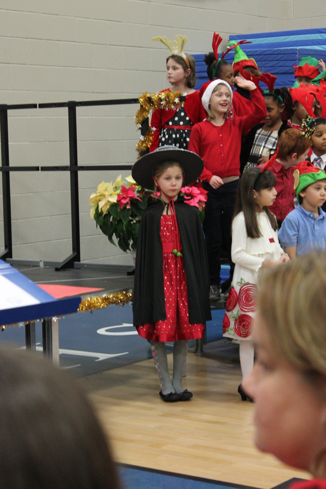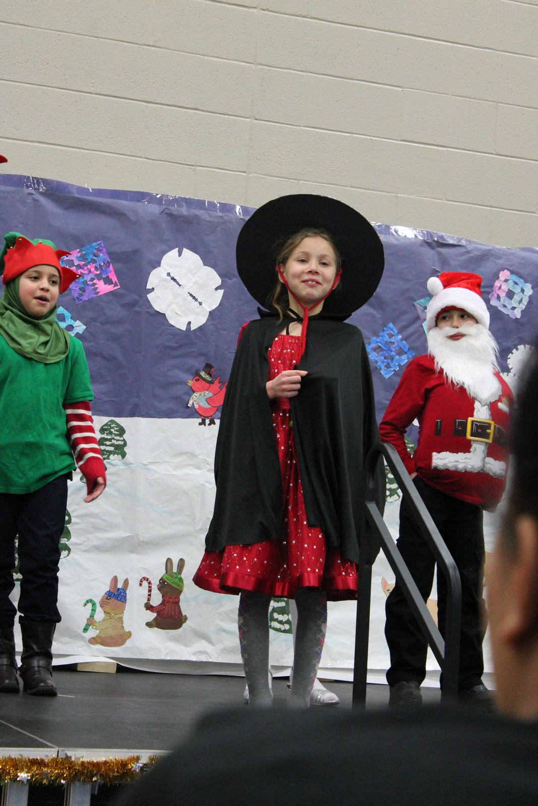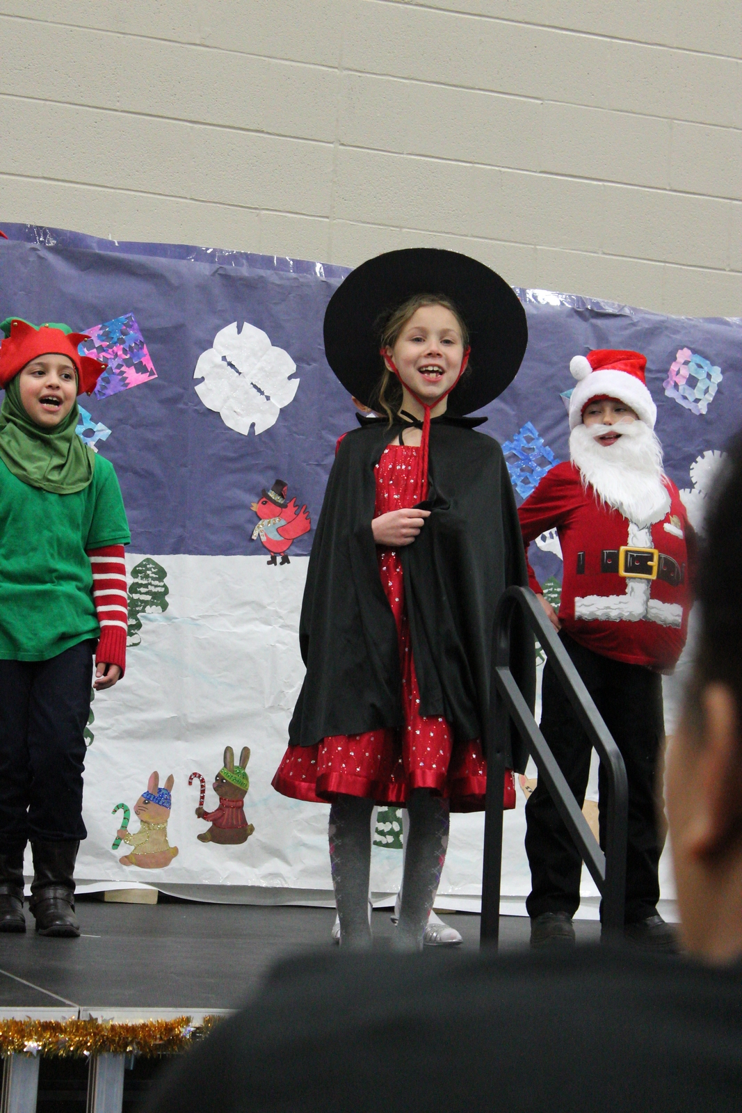 Yesterday, my eldest granddaughter starred in her school's Christmas pageant as Ceasar Salad, the reindeer whisperer. The story is cute, but the kids are cuter. About half way through, our little star started seeing stars - or spots in front of her eyes and felt sick. She bolted from the stage and her mom took her to the bathroom where she recovered quickly. When she returned, there was a special bit of applause just for her. I think, if you examine the images below, you can tell about where the bolt-from-the-stage happened.