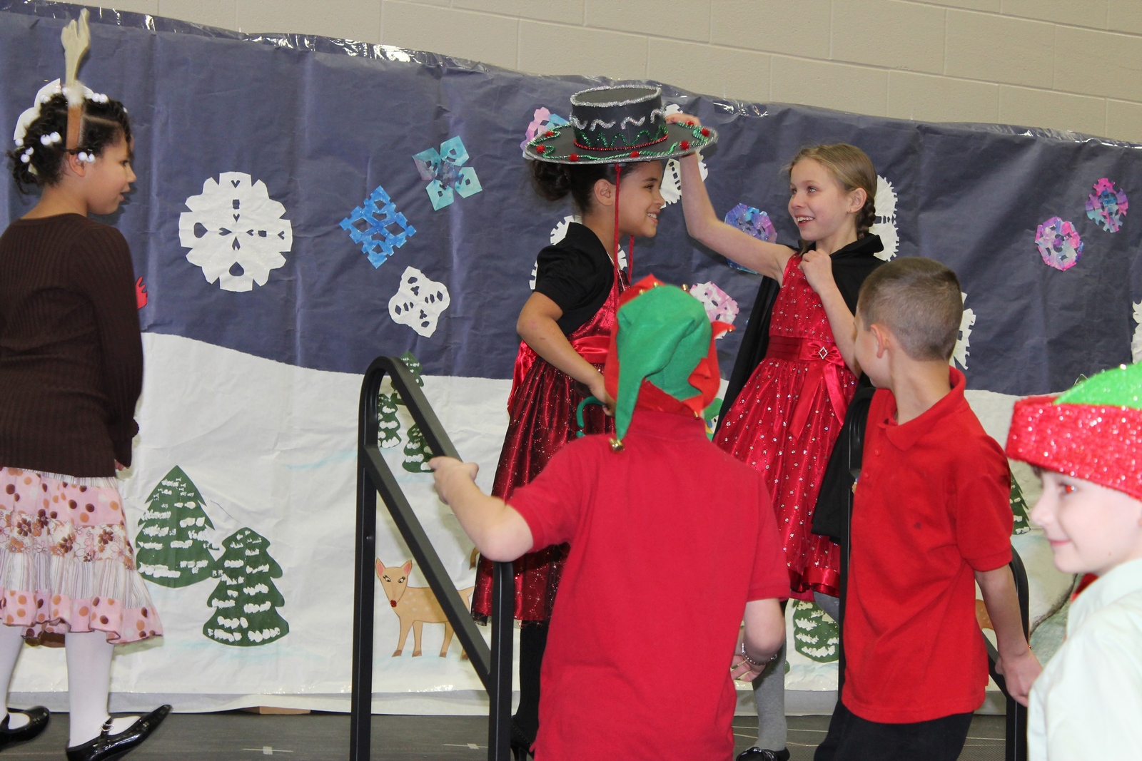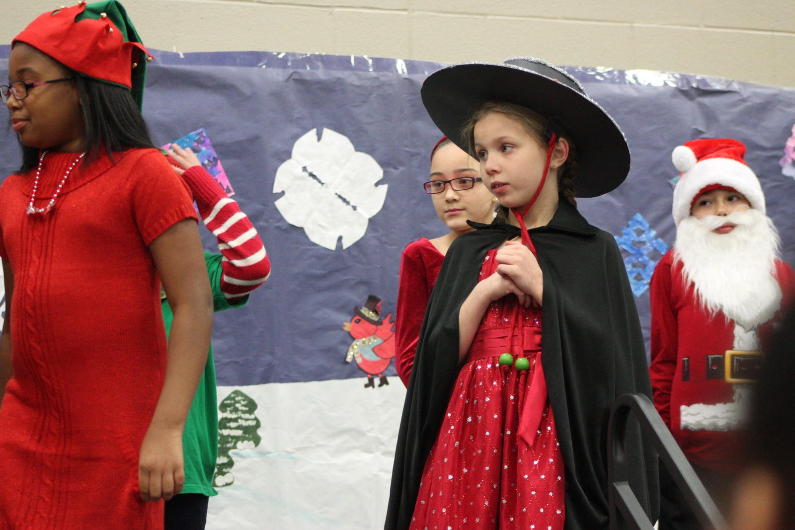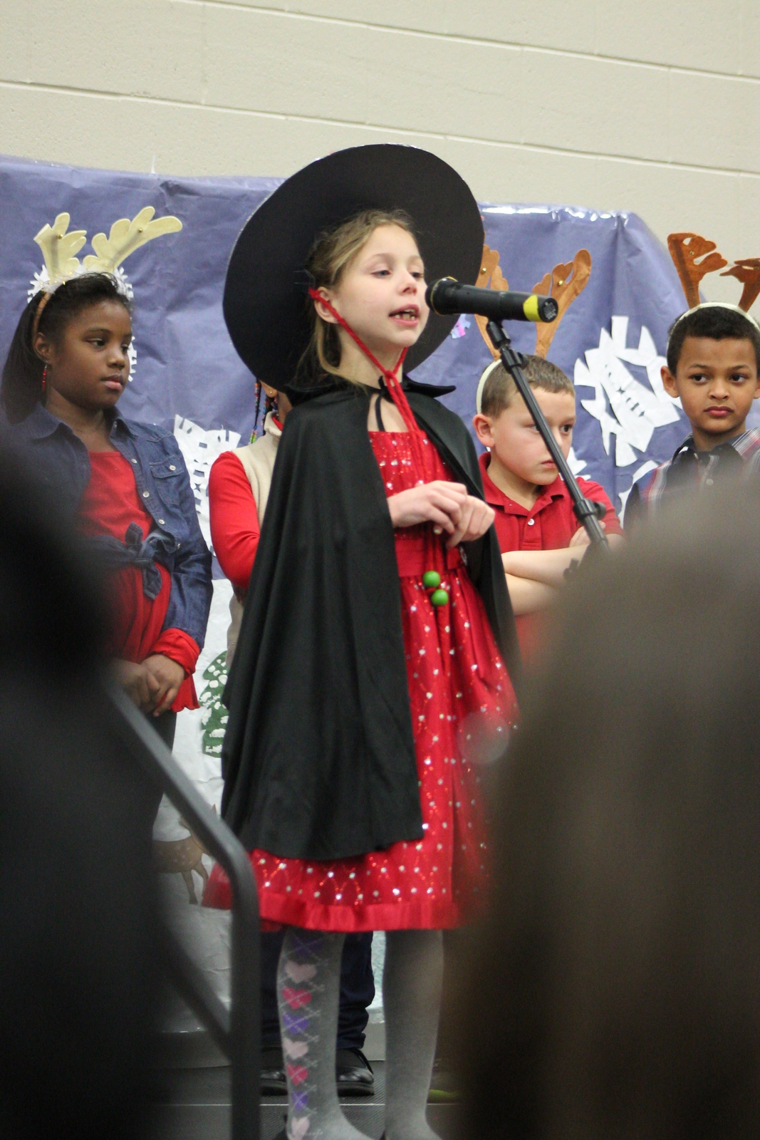 Yesterday, my eldest granddaughter starred in her school's Christmas pageant as Ceasar Salad, the reindeer whisperer. The story is cute, but the kids are cuter. About half way through, our little star started seeing stars - or spots in front of her eyes and felt sick. She bolted from the stage and her mom took her to the bathroom where she recovered quickly. When she returned, there was a special bit of applause just for her. I think, if you examine the images below, you can tell about where the bolt-from-the-stage happened.